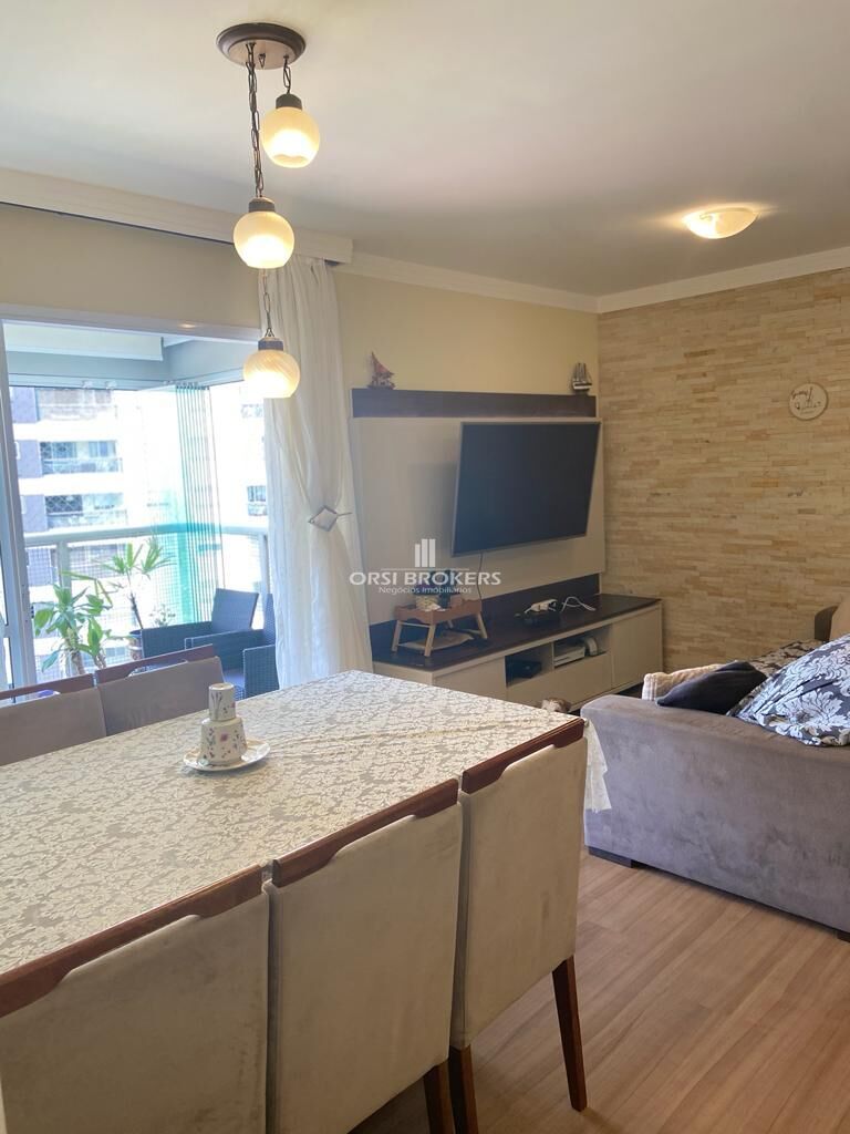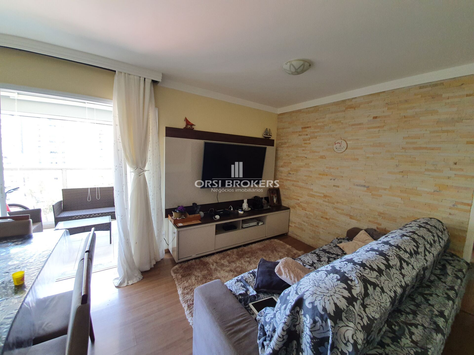 3 dormitórios (sendo 1 suite), sala ampla para 2 ambientes, sacada envidraçada gourmet, cozinha com móveis planejados e cooktop, área de serviço, banheiro social e 2 vagas de garagem cobertas.