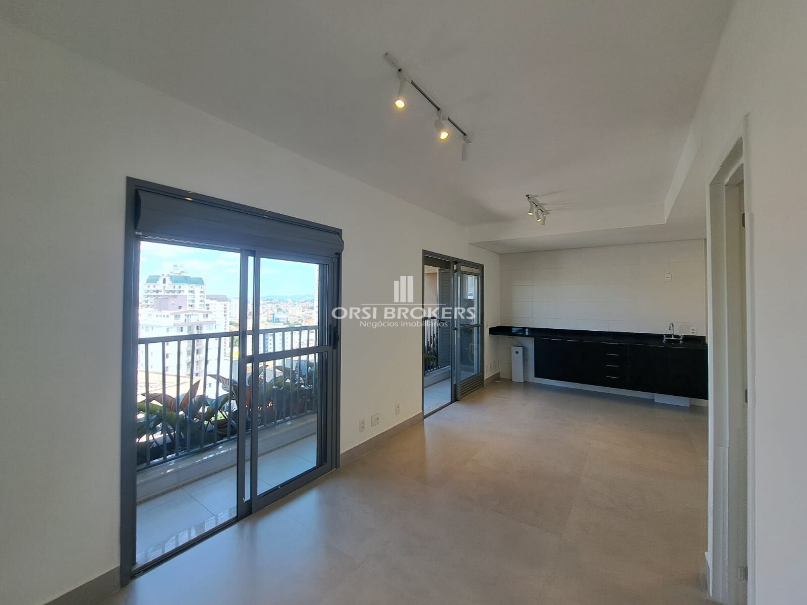 Living integrado com dormitório, cozinha e sacada;