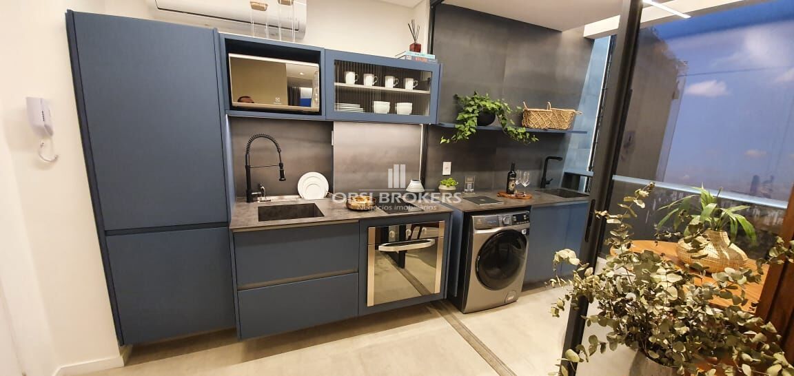 Mobiliado com: ar condicionado, armários, geladeira, cocktop, microondas, forno, televisão, cama, máquina de lavar, cortina, mesa de jantar, mesa de escritório, sofá, etc.