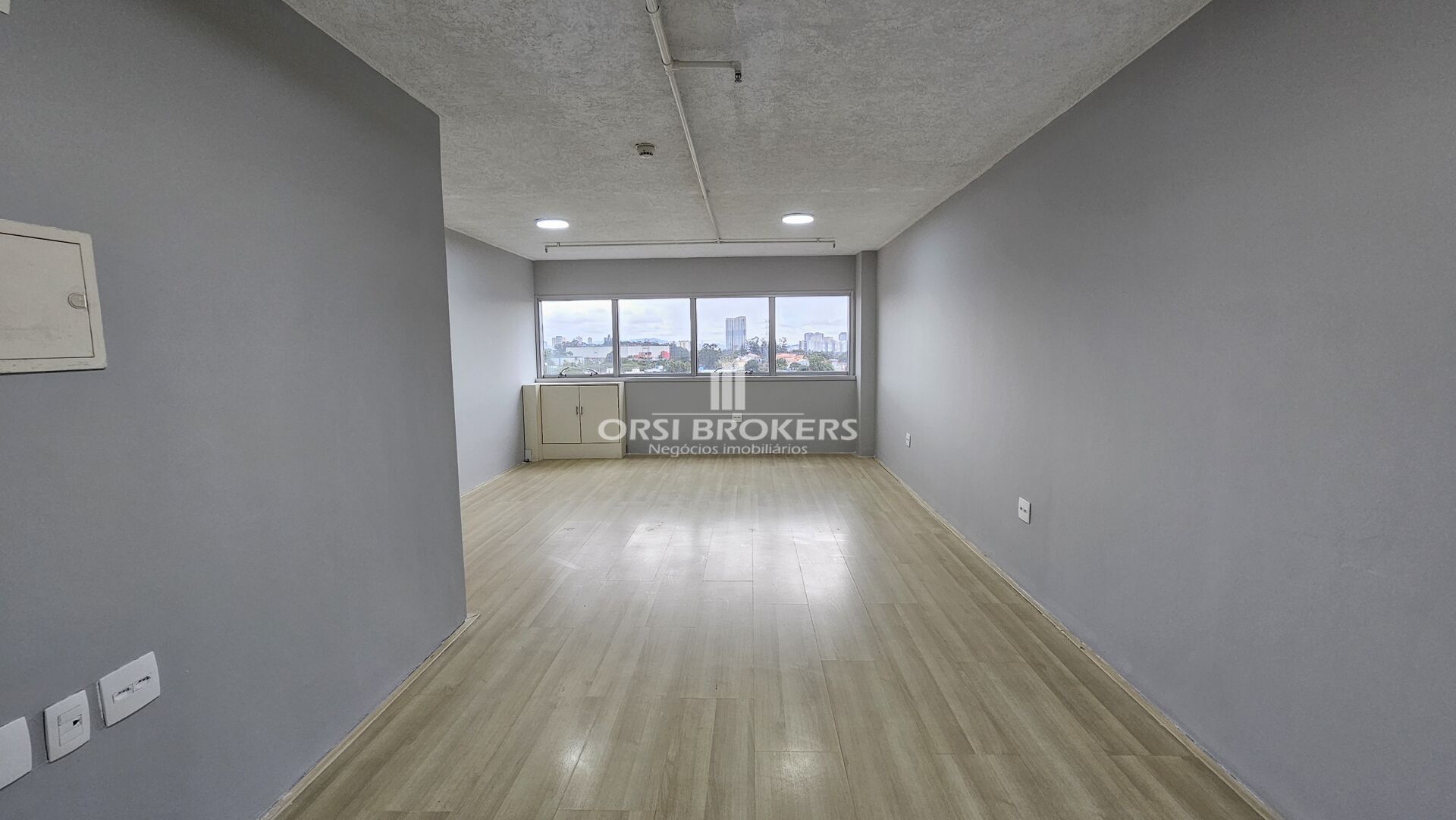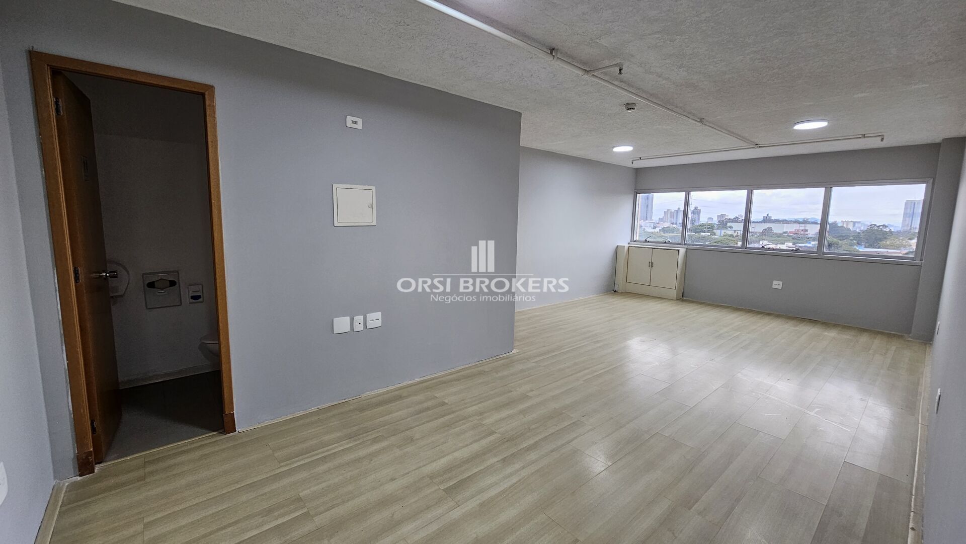 Sala comercial com 39m², 2 banheiros e 1 vaga de garagem.