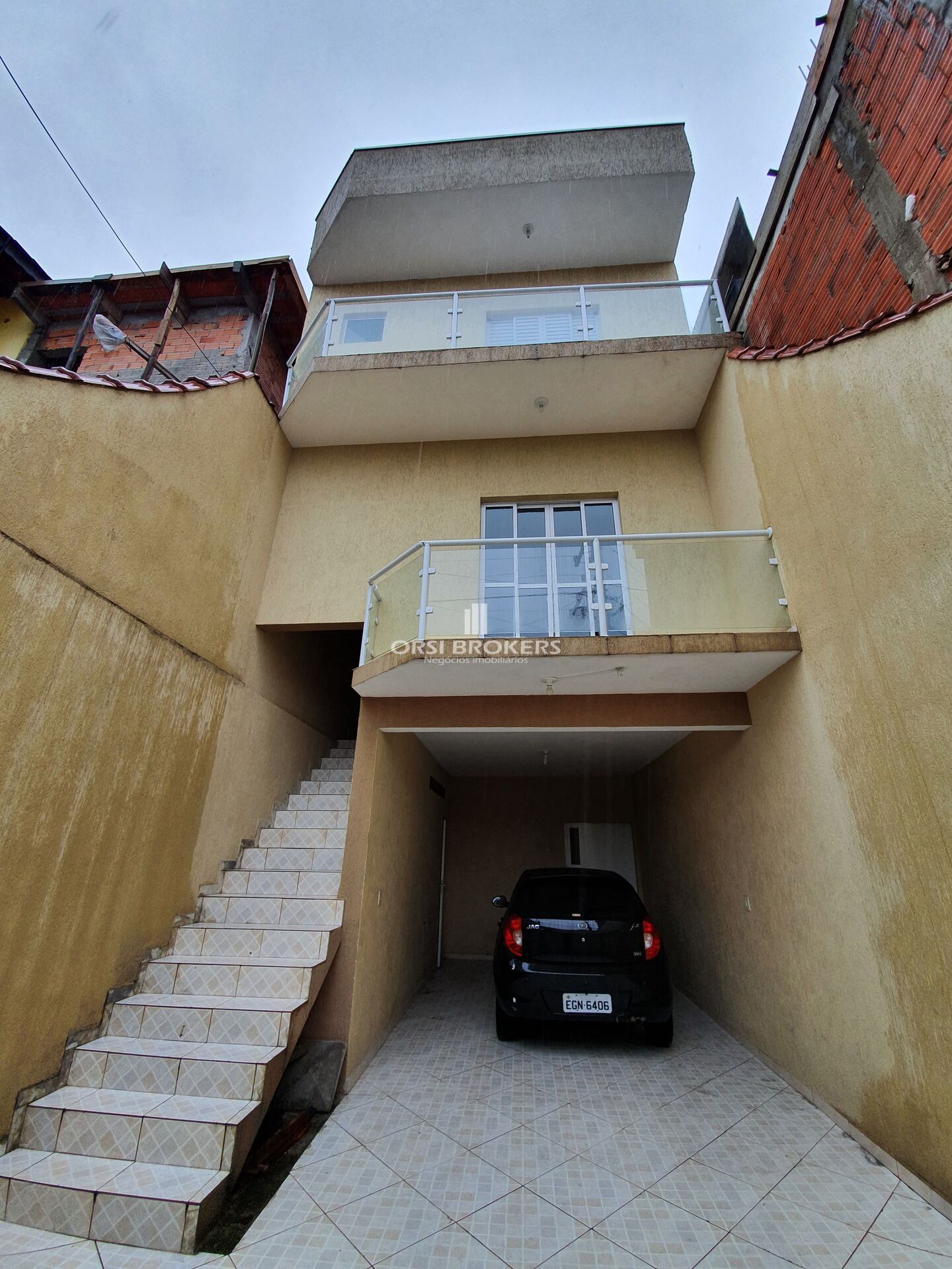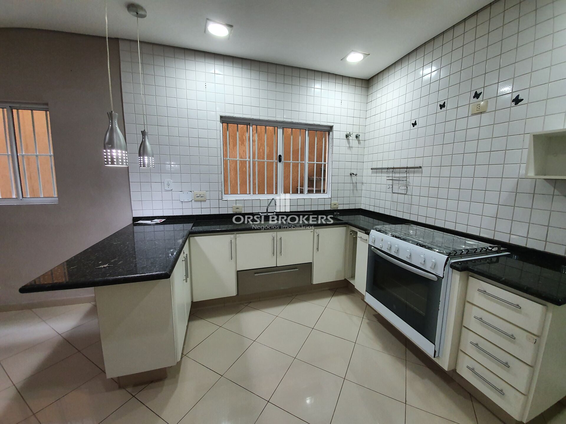 2 dorms (sendo 1 suíte com closet e sacada), sala de TV com saída pra churrasqueira, sala de estar, 3 banheiros, cozinha, sala de jantar, garagem para 2 autos + depósito e portão elétrico.